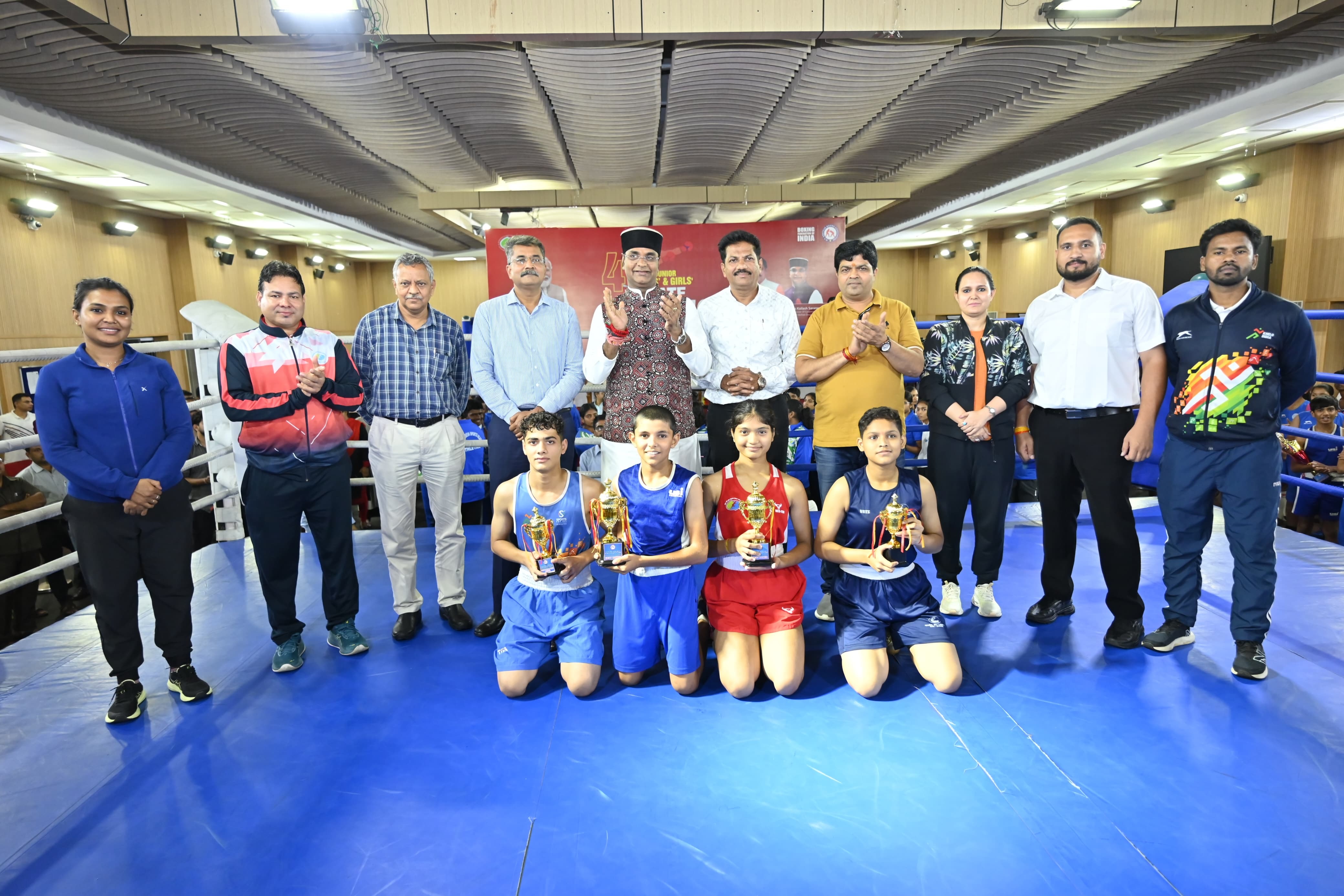 मंत्री सारंग ने उत्कृष्ट खिलाड़ी और टीम को सम्मानित किया। उज्जैन के लोकेश काग को बेस्ट बॉक्सर, टीटी नगर खेल स्टेडियम के विनय सोलंकी को बेस्ट प्रोमिसिंग बॉक्सर, टीटी नगर खेल स्टेडियम की अशिता रावत को गर्ल्स बेस्ट बॉक्सर और ग्वालियर की अंशिका तिवारी को प्रोमिसिंग बॉक्सर के खिताब से नवाजा गया। बालक टीम में टी.टी. नगर खेल स्टेडियम भोपाल, उज्जैन, जबलपुर कॉर्पोरेशन बॉक्सिंग ऐसोशिएशन और बालिका वर्ग टीम में टी.टी. नगर खेल स्टेडियम भोपाल, ग्वालियर और जबलपुर कॉर्पोरेशन बॉक्सिंग ऐसोशिएशन विजेता रहे। इस अवसर पर खेल संचालक राकेश कुमार गुप्ता, संयुक्त संचालक बीएस यादव और मुख्य कोच रोशन लाल उपस्थित थे। मंत्री सारंग "नशे से दूरी, है जरूरी" जनजागृति अभियान के तहत समारोह में शपथ भी दिलवाई।